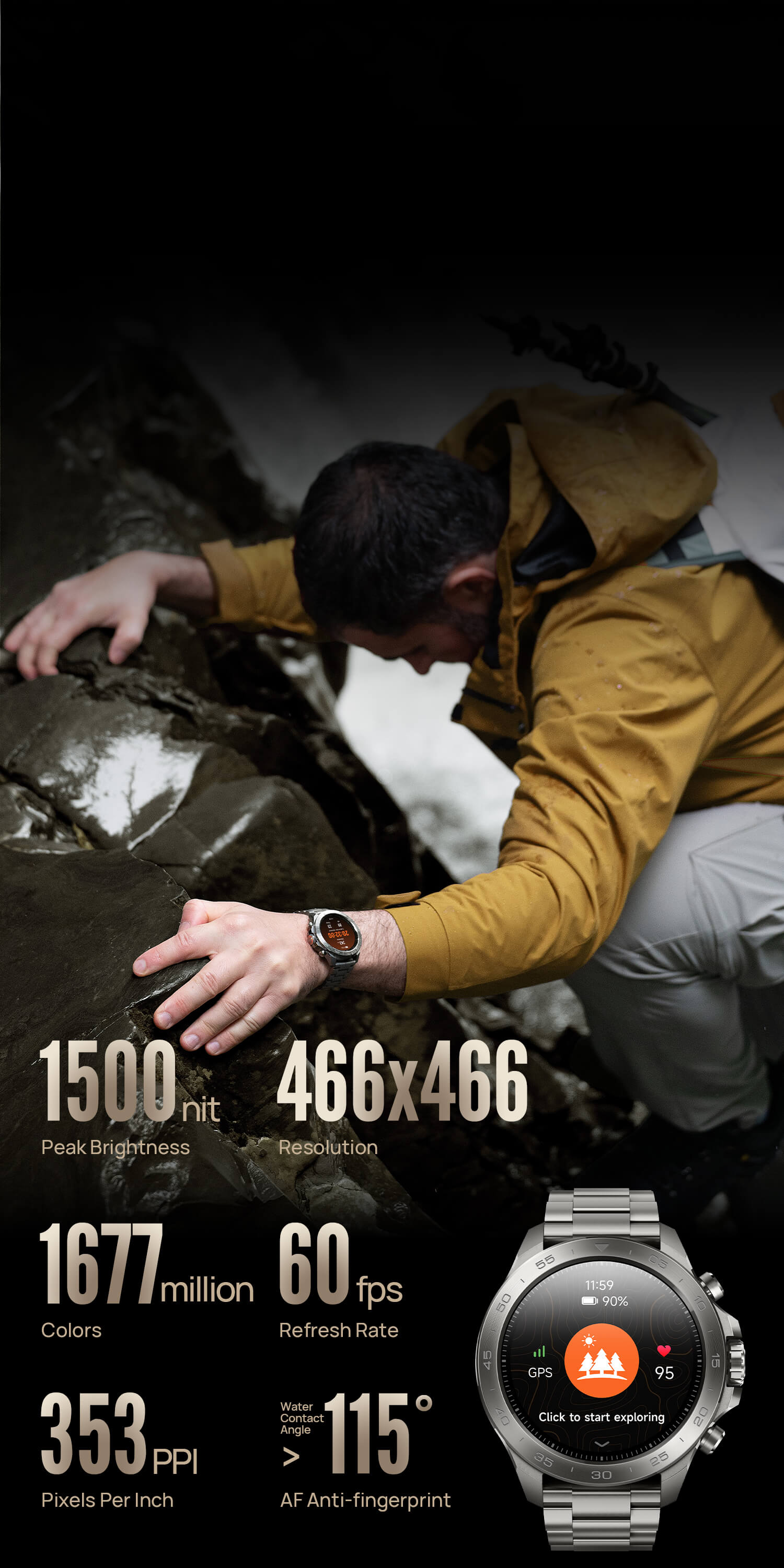 Navigate with pinpoint accuracy using advanced dual-frequency L1+L5 GNSS (200% stronger signal, 20% higher accuracy). One-tap Explorer Mode provides offline vector maps, waypoint marking with custom icons, and track‑back navigation — plus a built-in compass, altimeter, barometer, and weather alerts. Never lose your way.